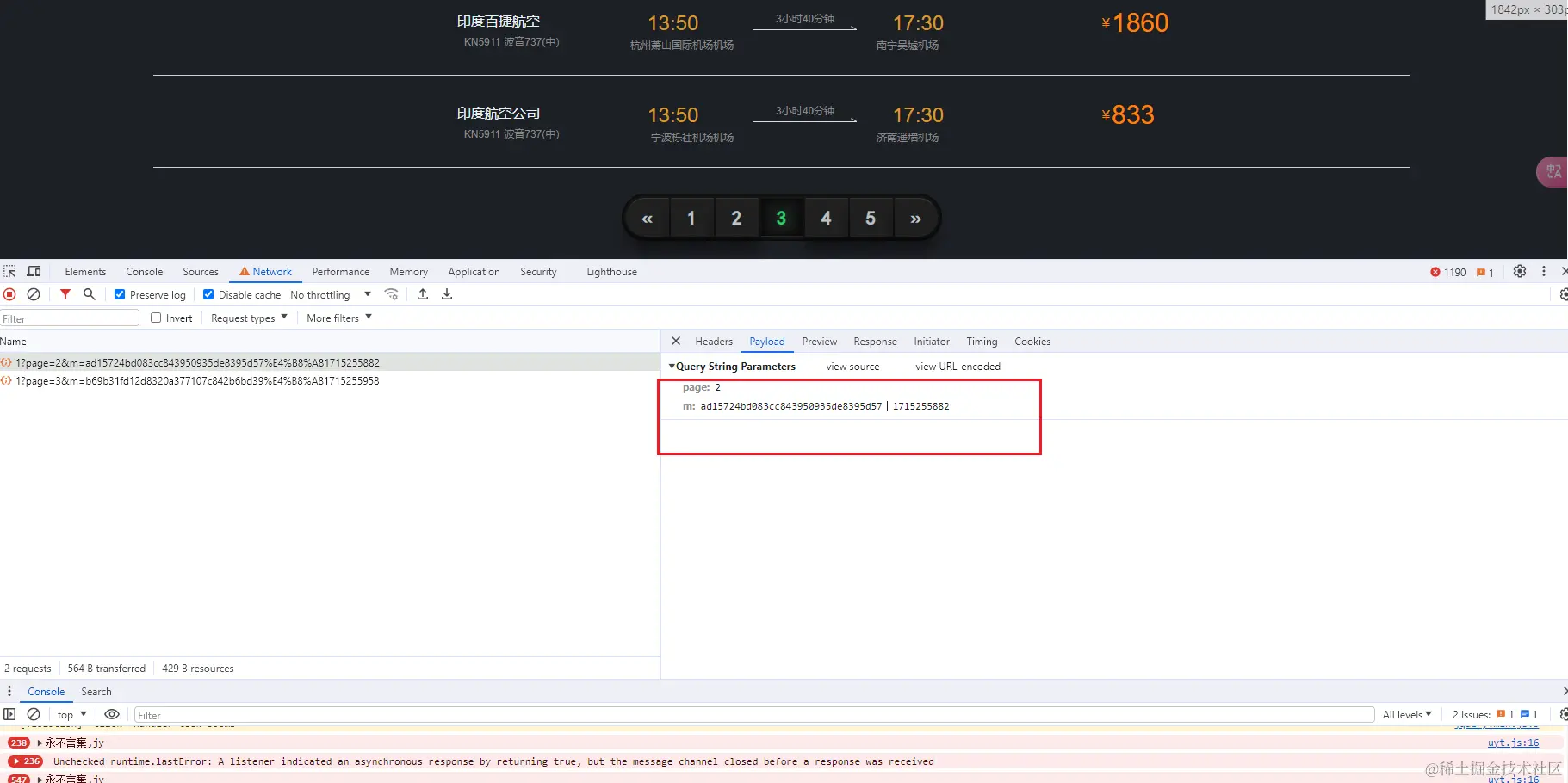 上下翻页,我们很快能够找到具体数据响应的接口。