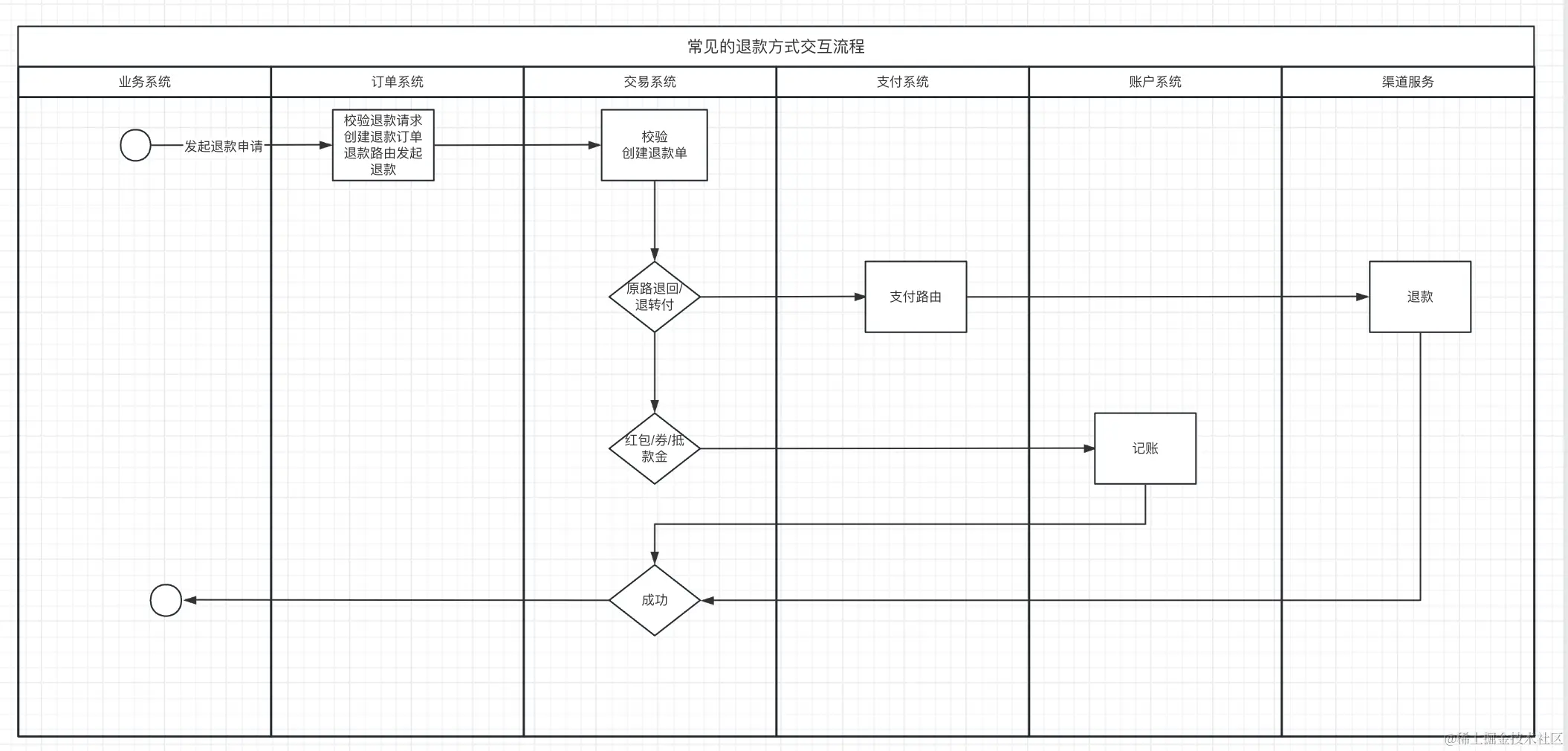 - 支付方式退款:用户可能使用了多种支付方式,需要按照一定的规则(如按比例或先后顺序)进行退款。