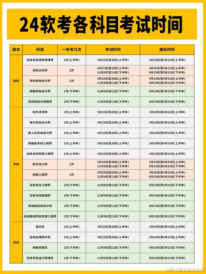 此外,软考中级【软件设计师】和【网络工程师】也是一年考两次的。