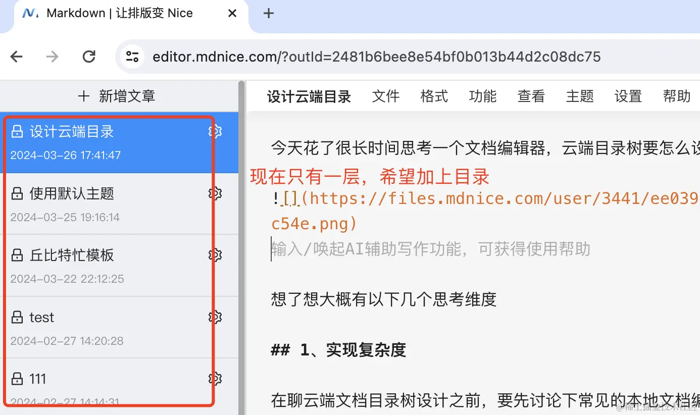 今天花了很长时间思考一个网页文档编辑器,云端目录树要怎么设计