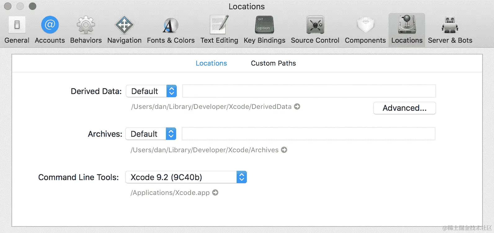 这将在一个新的name-of-project目录中创建一个新的项目。这个项目暴露了所有的原生代码,并且需要 Xcode 来运行 iOS 应用程序和 Android Studio 来运行 Android 应用程序。幸运的是,为了支持 iOS React Native 开发安装 Xcode 是一个简单的过程。第一步是从 App Store 下载 Xcode 并安装它。第二步是安装 Xcode 命令行工具。要做到这一点,打开 Xcode,从 Xcode 菜单中选择“首选项”,打开位置面板,并从命令行工具下拉菜单中安装最新版本: