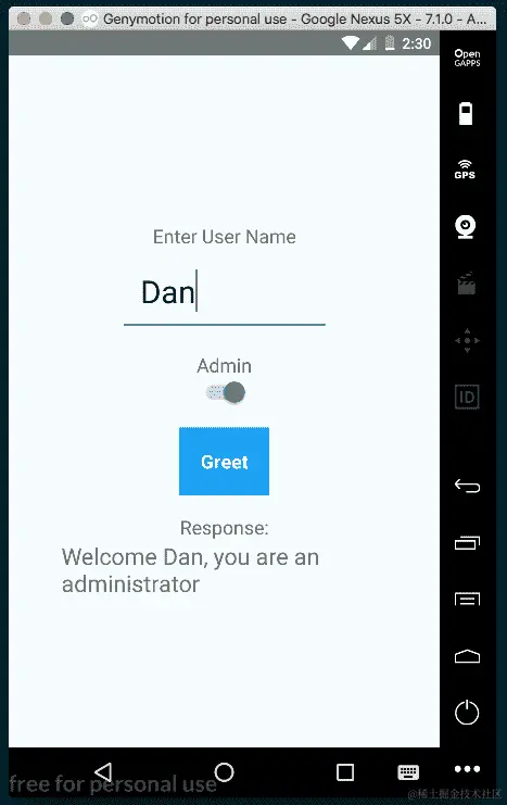 在配方的 JavaScript 部分,当用户按下Button组件时,将执行greetUser函数。 这反过来又调用HelloManager.greetUser,并传递state中的userName和isAdmin属性以及updateGreetingMessage方法作为回调。 updateGreetingMessage在state上设置新的greetingMessage,导致 UI 刷新并显示消息。