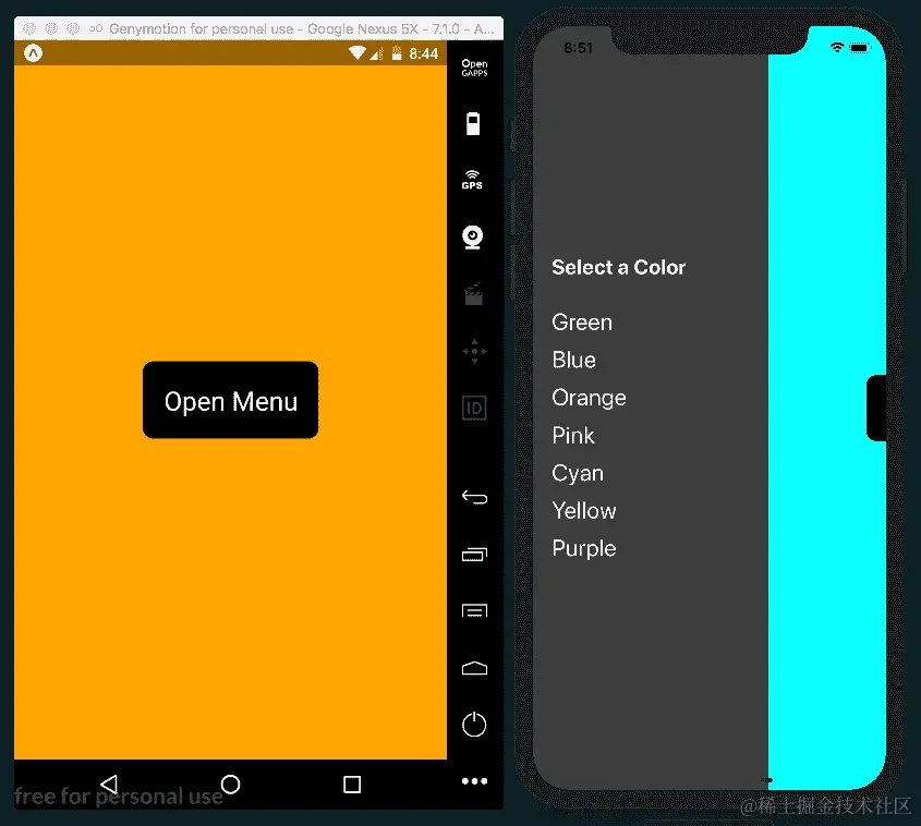 使用 react-native-side-menu 添加侧边导航菜单