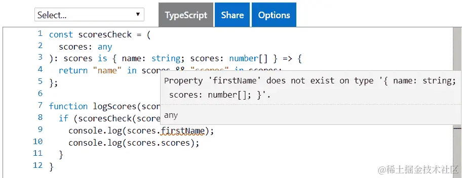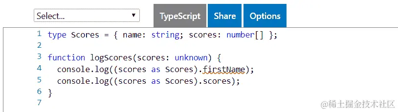 www.typescriptlang.org/play/,允许我们在不安装它的情况下玩转和理解 TypeScript 中的功能。 -