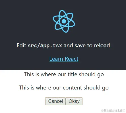 Confirm组件目前不会卸载,因此在App.tsx中,让我们在倒计时达到0时不再渲染它:
