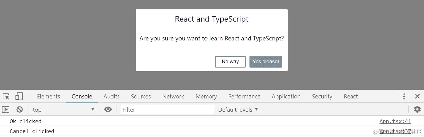 如果我们查看运行中的应用程序和控制台,我们会看到每次Confirm被渲染时都会出现确认渲染。