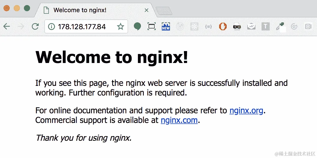 - 如果我们尝试访问我们的 IP,我们应该看到我们的 Nginx 正在工作: