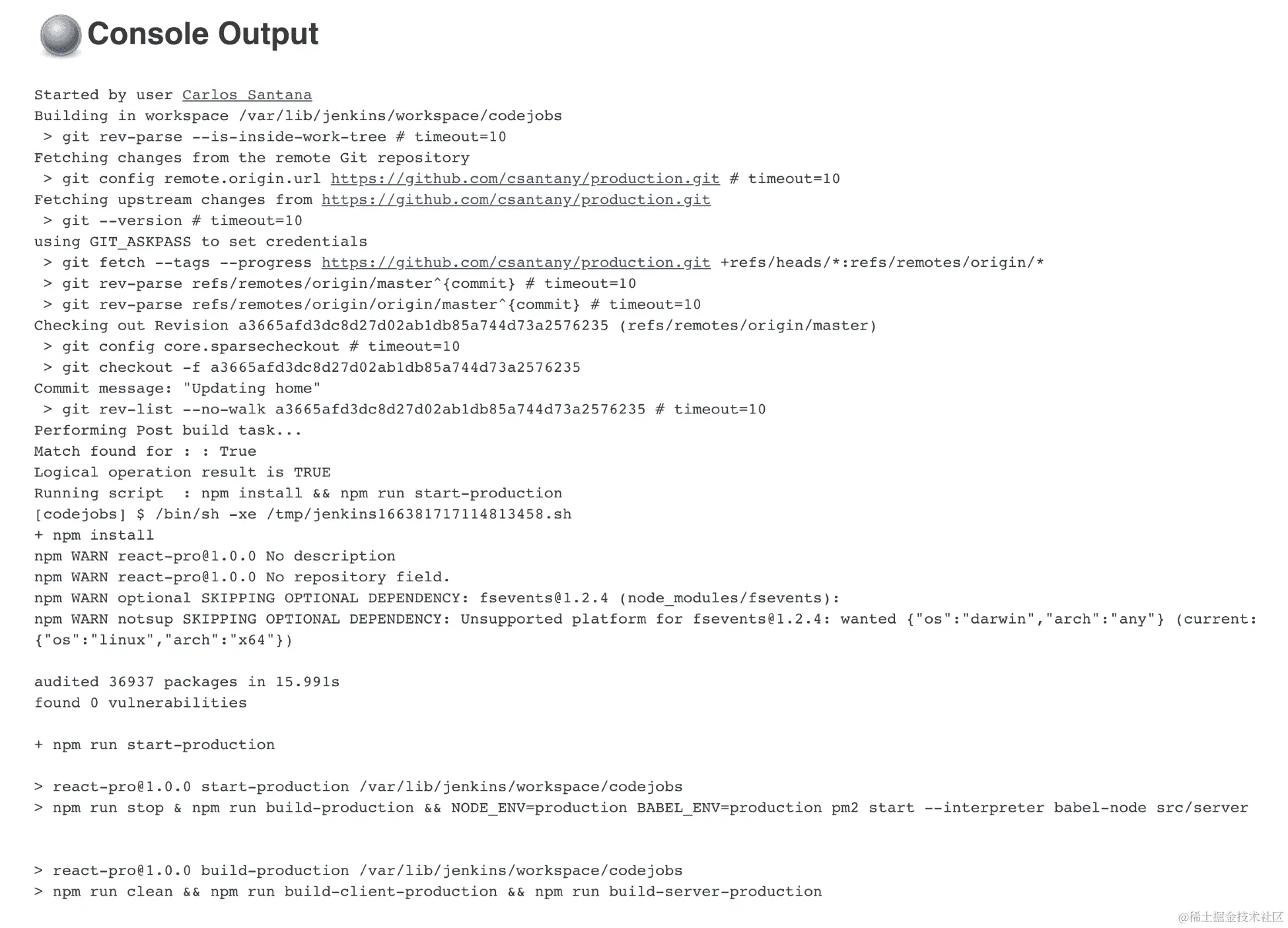 要测试我们的应用程序,让我们运行 npm run start-production 脚本: