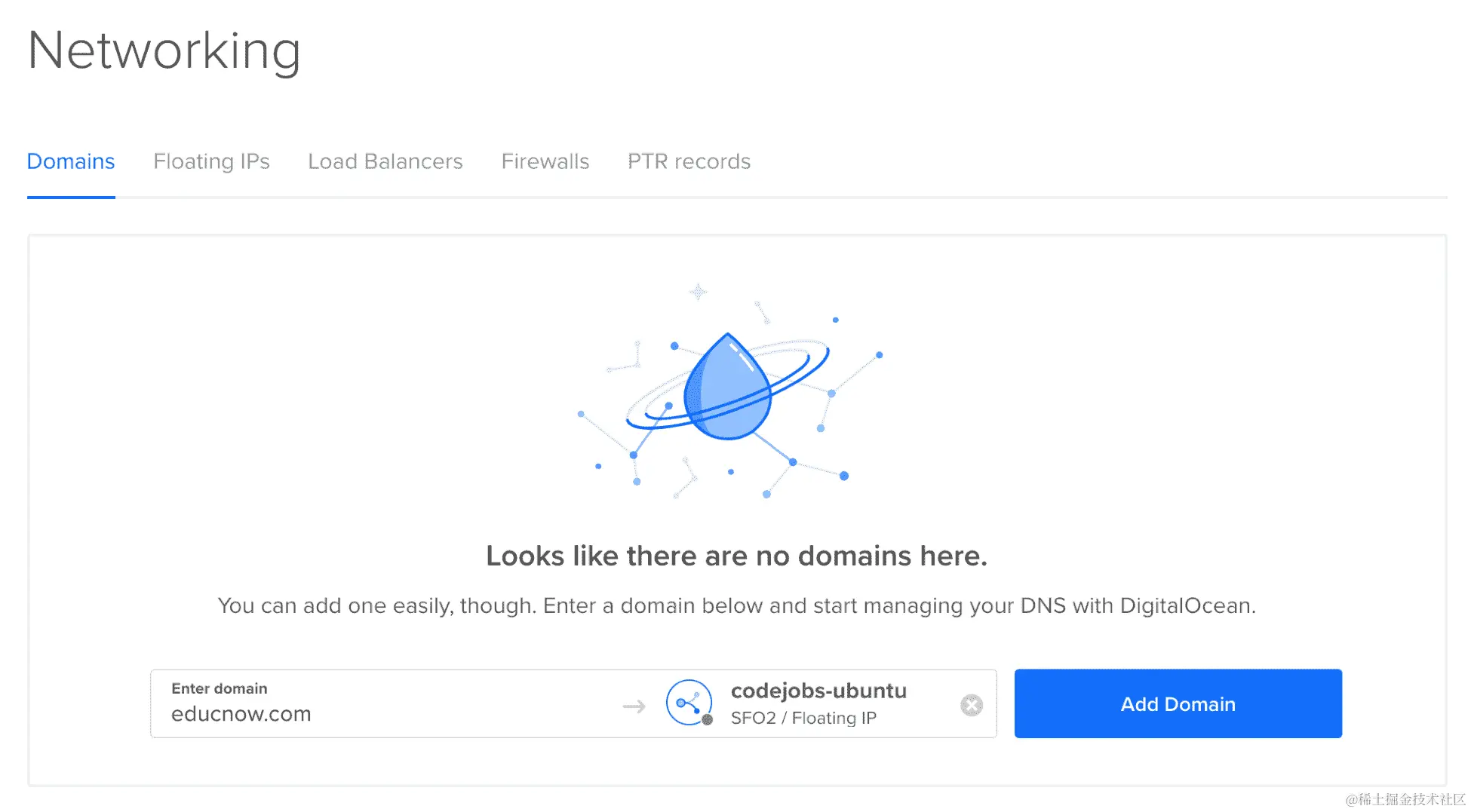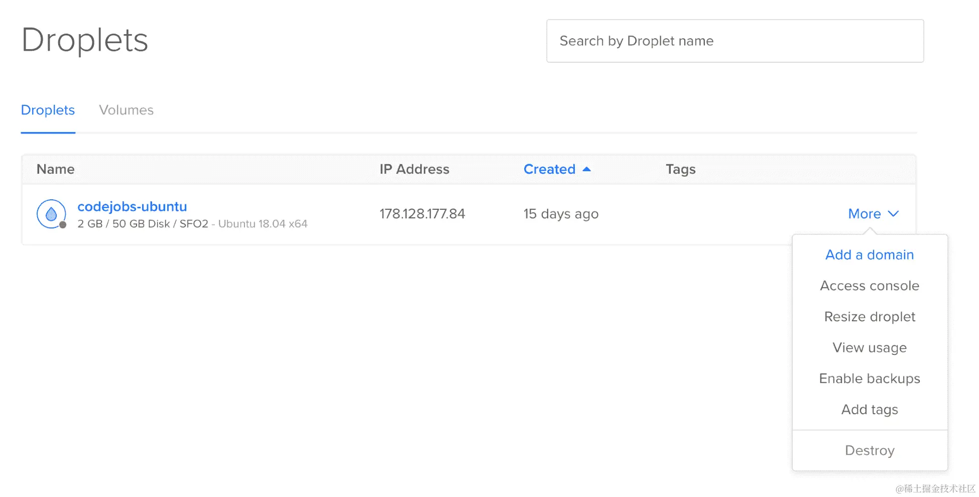 让我们创建我们的第一个 Droplet: