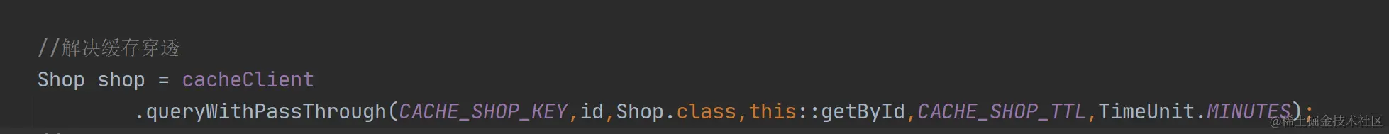 .queryWithPassThrough(CACHE_SHOP_KEY,id,Shop.class,this::getById,20L,TimeUnit.SECONDS);