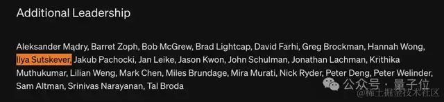 在 OpenAI 刚刚发布的最新旗舰模型 GPT-4o 主页上,Ilya 的名字出现在 “额外领导者” 一栏。