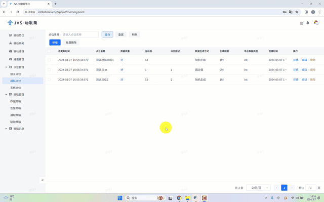 如下图所示,从模拟点位菜单进入模拟点位管理界面,
