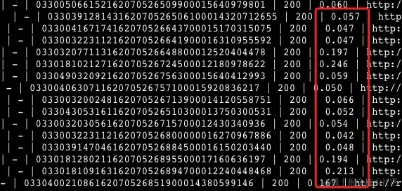 首先,从我们最有掌握权的地方入手,也就是处理程序,怀疑是否程序处理过慢、接口响应时间过长导致?由于在实际服务前面都使用了 Nginx 做了层反向代理,所以通过 Nginx 的接入日志很容易可以看到服务的响应时间。