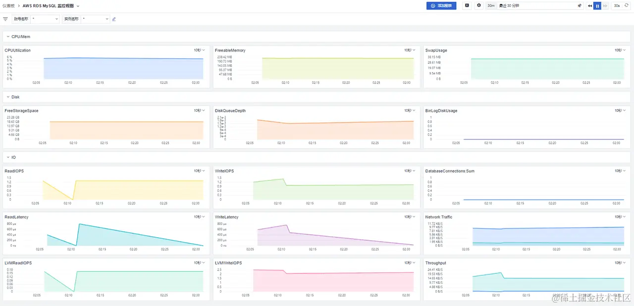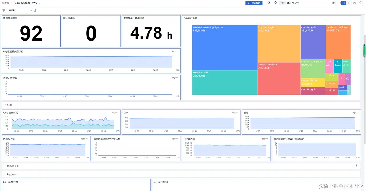 相对于通过脚本访问亚马逊云科技 API 的方式获取云服务指标,观测云通过 DataKit 直接采集数据,可以配合标准视图显示更多指标,并且可以进一步补充,如 RDS 直接采集可以进一步获取 MySQL 慢查询日志、普通日志、运行日志等信息,在观测云 UI 上配合指标进行进一步分析;Redis 直接采集,可获取 redis_bigkey 、 redis_hotkey 等字段分析、结合采集到的 Redis 指标、慢查询日志等,帮助工程师进一步进行分析性能、定位问题。