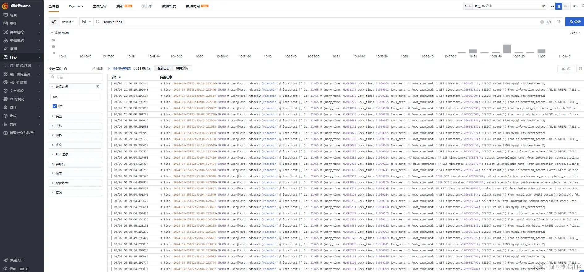 对于数据库服务,一个典型的分析场景是性能优化和故障排除。慢查询日志可以帮助识别数据库中执行时间较长的查询语句,从而找出性能瓶颈和潜在的优化机会。用户通过分析慢查询日志,可以发现可能需要优化的索引、缓存问题、复杂查询等,以提高数据库性能,排除数据库故障。