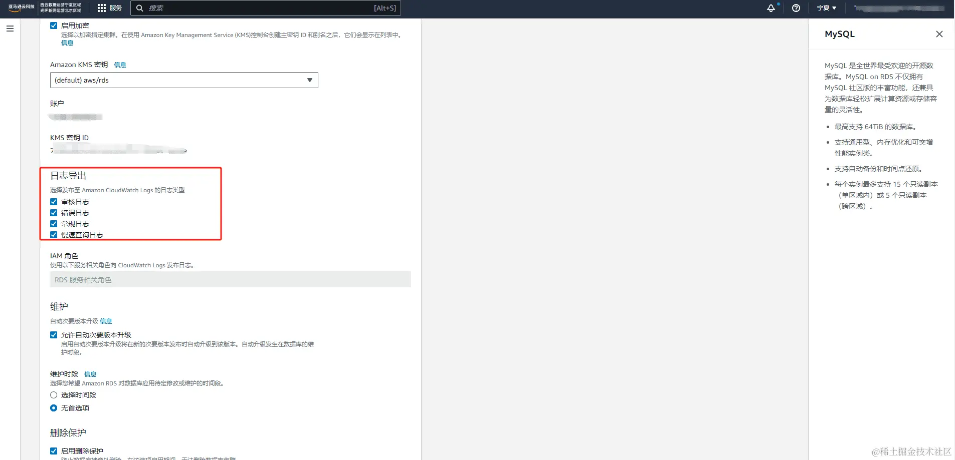 RDS 日志导出至 Amazon CloudWatch Logs 。