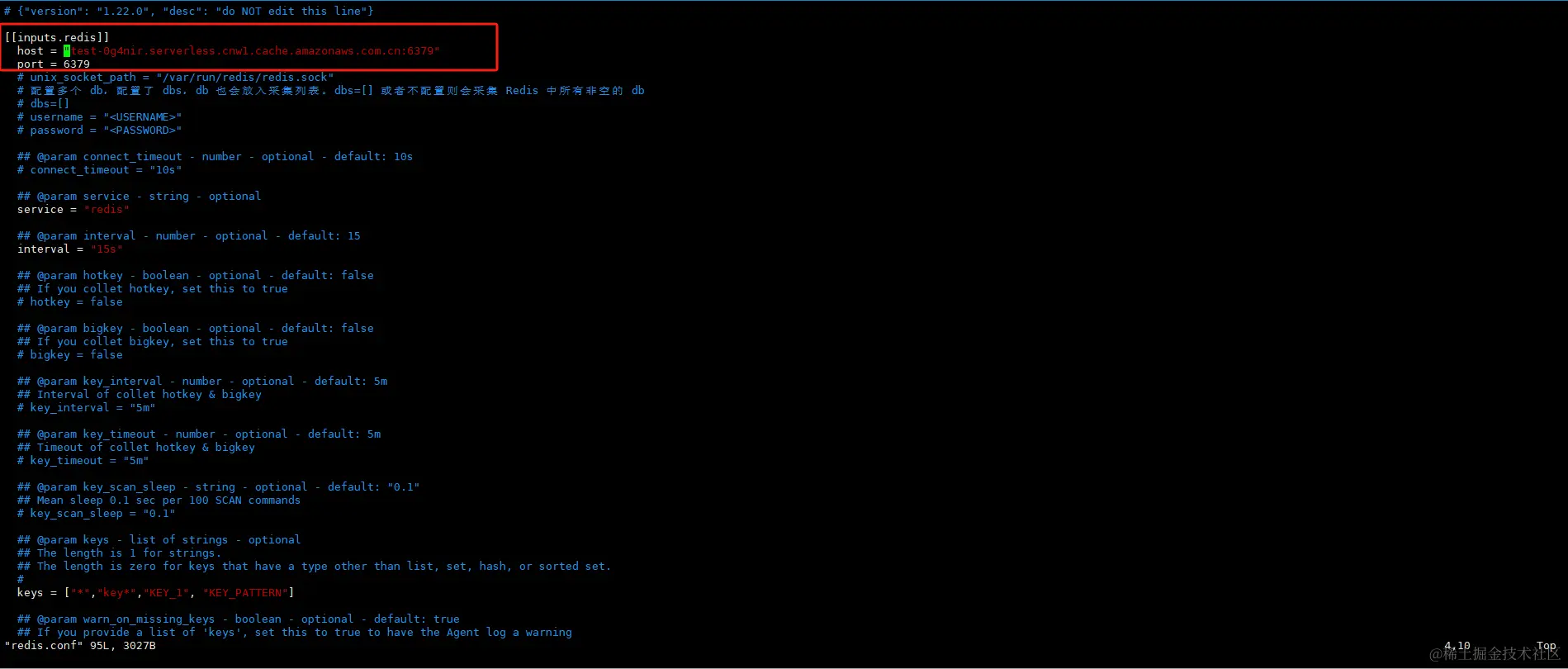 conf.d/db目录,复制redis.conf.sample并命名为redis.conf - 配置配置文件连接参数后并重启 DataKit