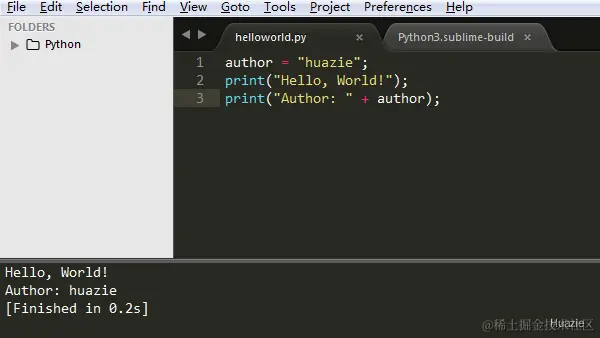 Python 是一种简洁但功能强大的面向对象编程语言。它的常用开发工具有很多,相信大家多多少少都有所了解,比如 PyCharm、Visual Studio Code、IDLE 等等;本篇 Huazie 介绍一个比较轻量级的开发环境 Sublime Text 3,并用它来配置 Python 开发环境。