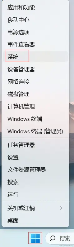 右击 Window 图标,打开下图并选择 系统: