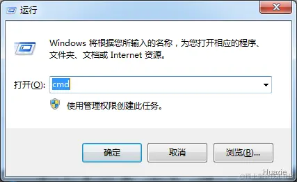 然后 Win + R,打开如下窗口,输入 cmd,点击确认打开命令行窗口。
