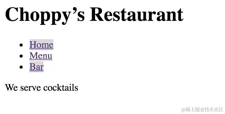 最后,注意页面的 URL 看起来不太自然,而是带有哈希符号;我们希望 URL 看起来更好: