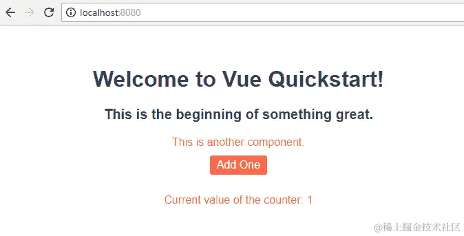 在这一部分,我们将简要回顾 props,看一个在 Vue 中如何在父组件和子组件之间通信的实际例子。换句话说,我们想从父组件获取一些数据并将其传递给子组件。我们将要传递的数据只是要包含在我们的quickstart-vue应用程序的计数器中的额外数字。