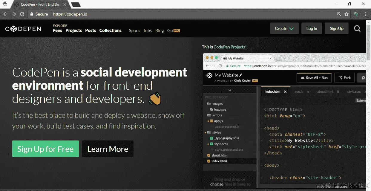 一旦您将浏览器导航到codepen.io,您将看到以下屏幕: