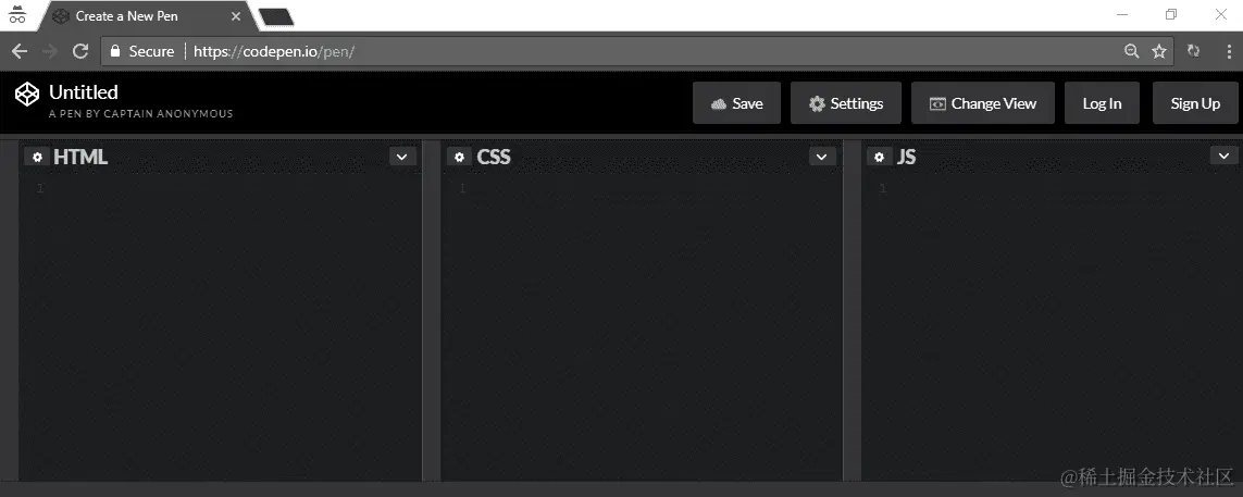 您不必成为codepen.io/的成员才能在那里创建项目——您可以使用用户名Captain Anonymous保存它们。但最好还是注册一个账户,这样您的所有实验都在一个地方。
