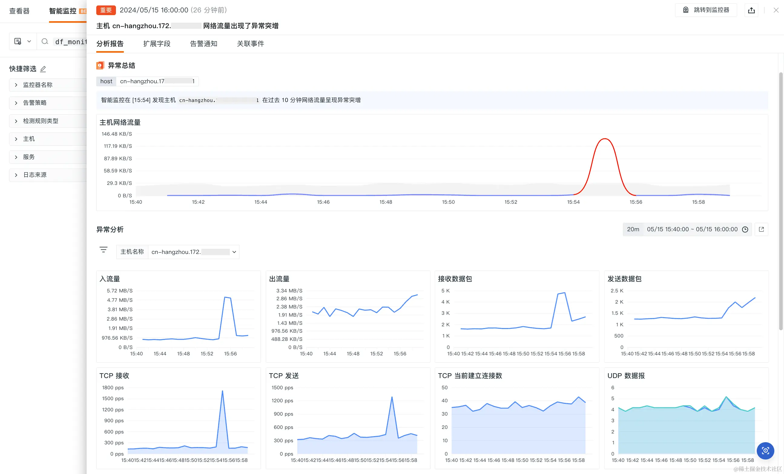 3、智能监控 > 主机智能监控:新增网络流量、磁盘 IO 两项检测维度。