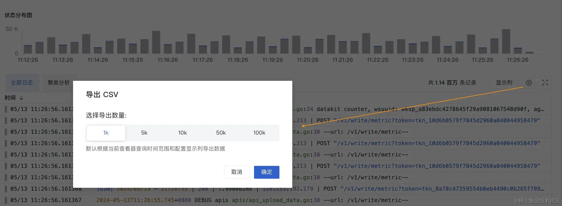 2、所有查看器支持选择导出数据量为 CSV 文件。