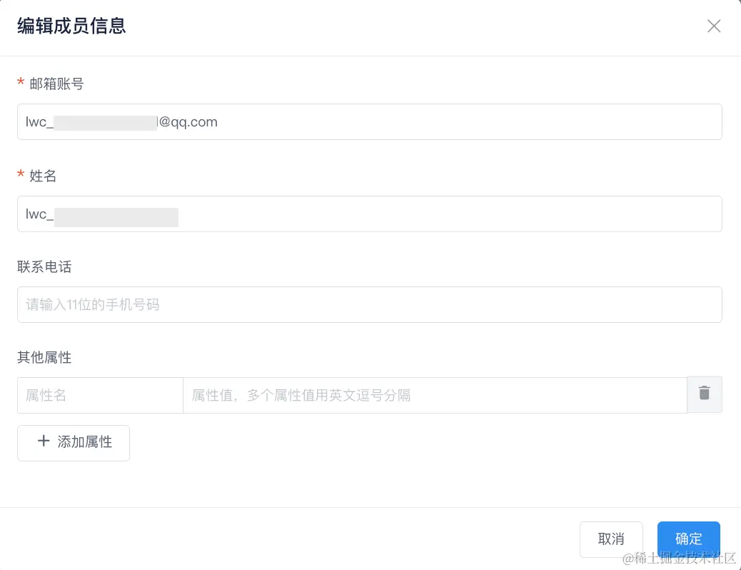 3、用户:新增扩展属性配置。