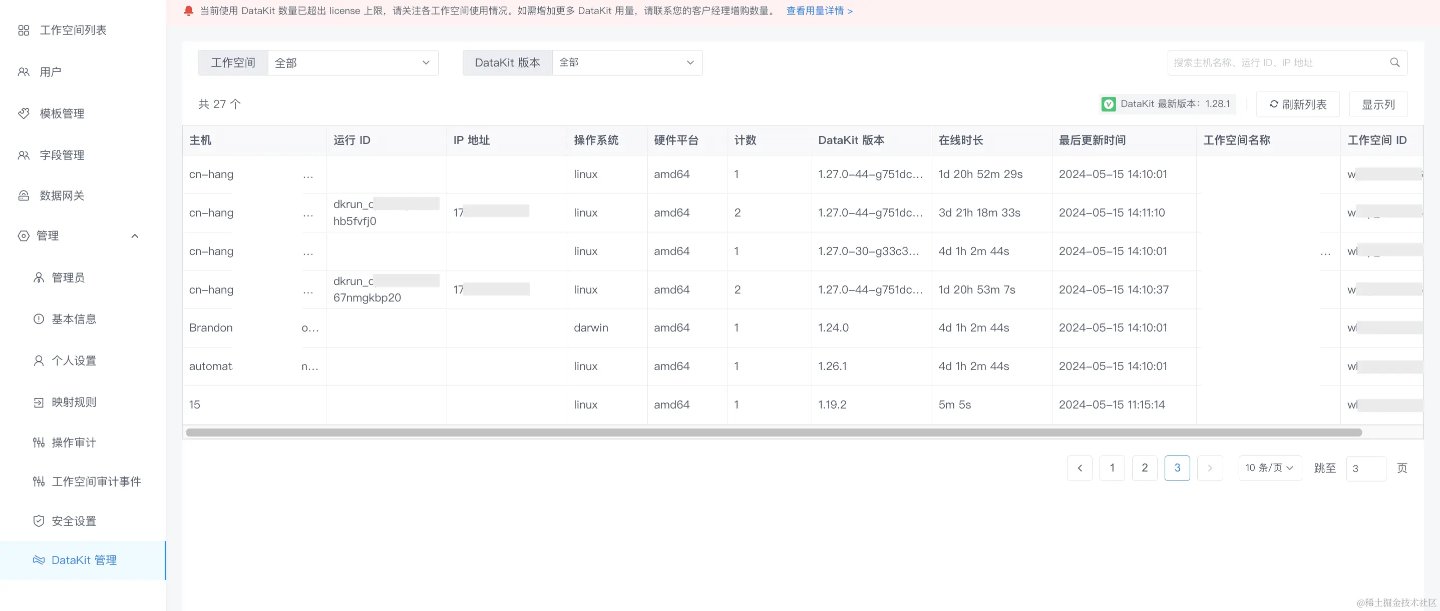 1、新增 DataKit 清单管理页面。