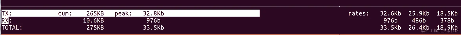 这些值是总流量传输,接收和总计。