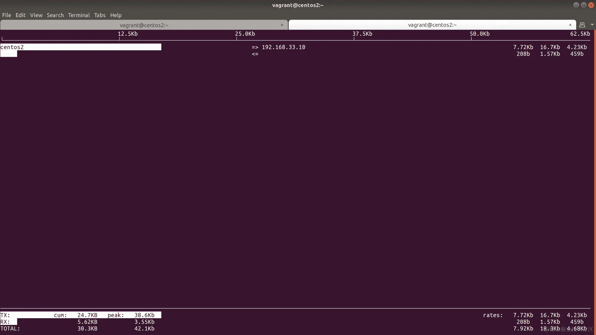 这显示了发送到192.168.33.10(centos1)的流量和以相对可读的格式接收到的流量。