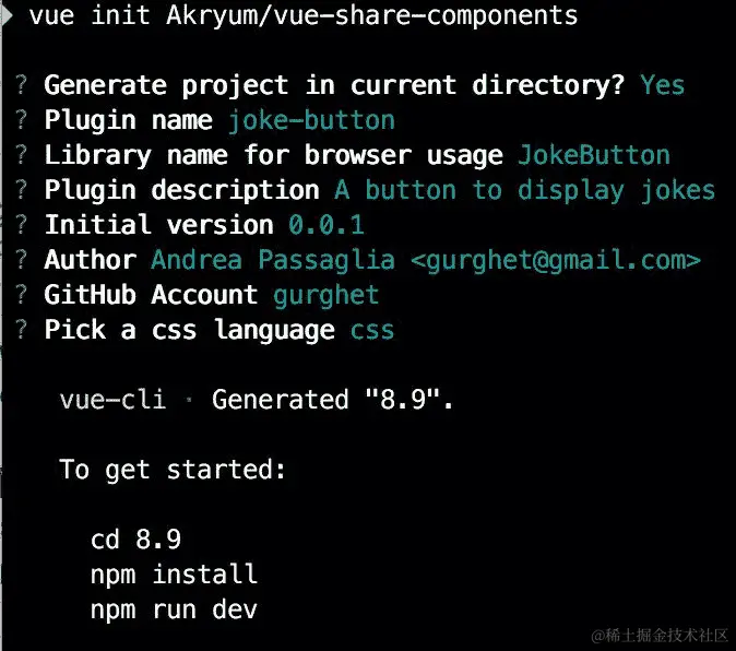 我在这个教程中采用的方法是使用Guillaume Chau的优秀vue-share-components模板。我们将从这个起点构建一个笑话按钮。