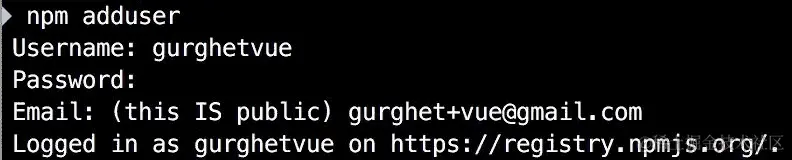 你将需要输入刚刚为 npm 网站输入的密码。