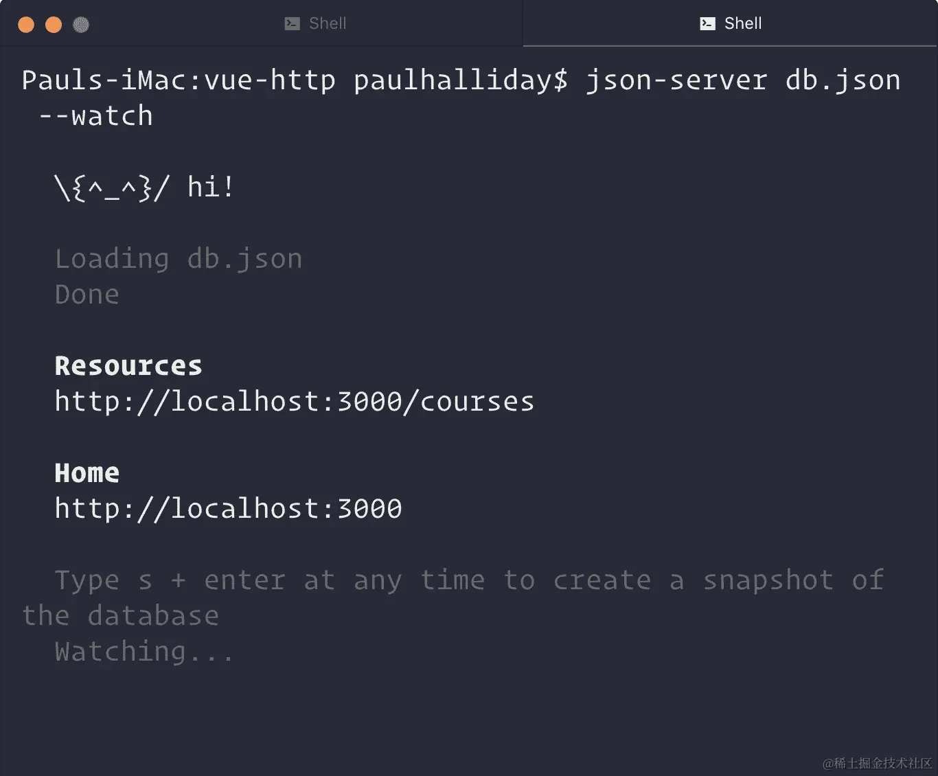 $ json-server db.json --watch