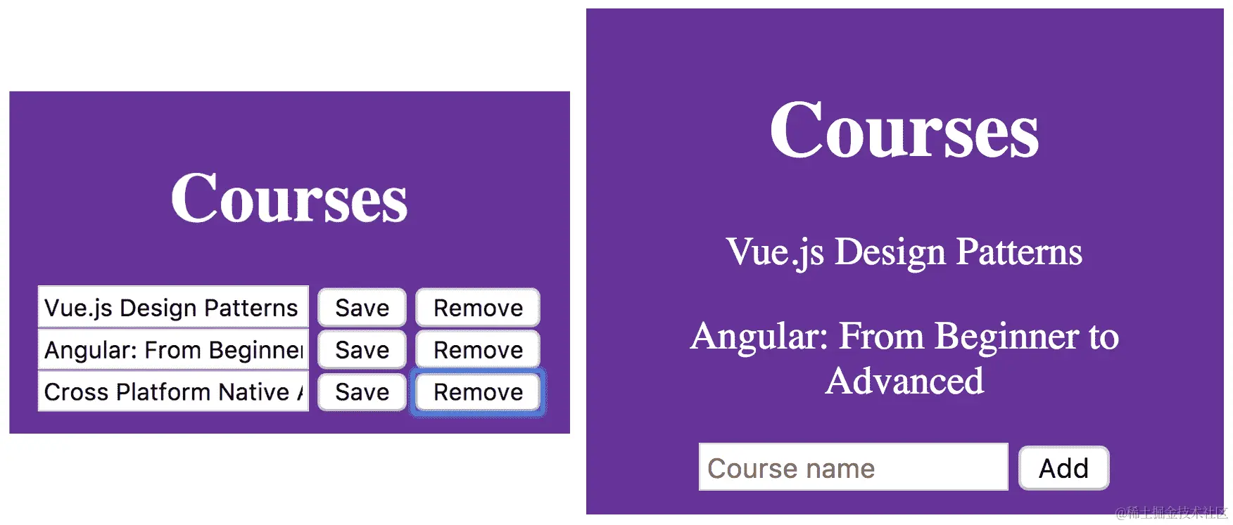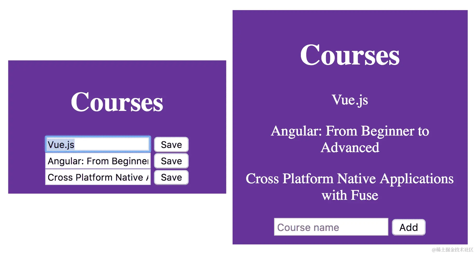 <input type="text" v-model="courseName" placeholder="Course name">