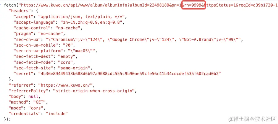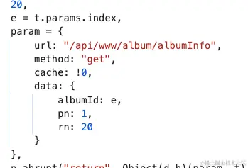 不难发现,这个 reqId很是显眼,于是全局搜索接口名称 album/albumInfo定位到了发出请求的位置和代码如下