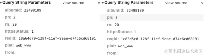 看一下请求参数的内容,很明显 pn表示第几页,rn表示每页的条数。
