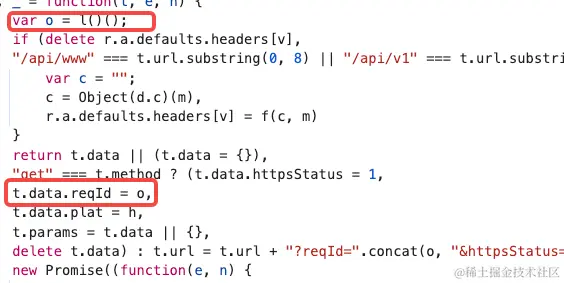 o就是 reqId,也可以看到 o是由 l()() 这个函数产生的。