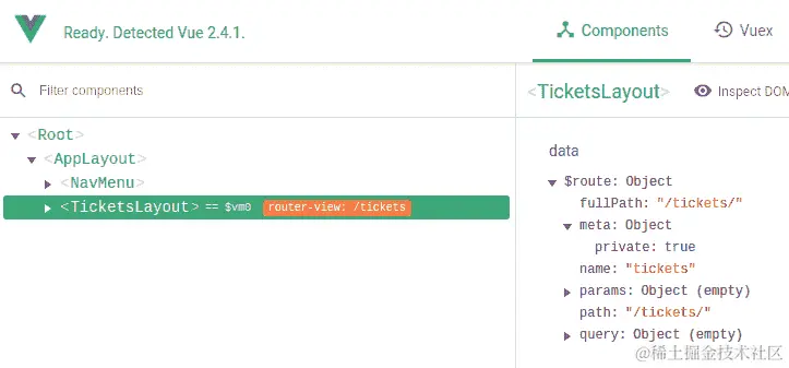 现在,如果您点击一张票,$route.params对象将具有id属性设置为票的 ID。