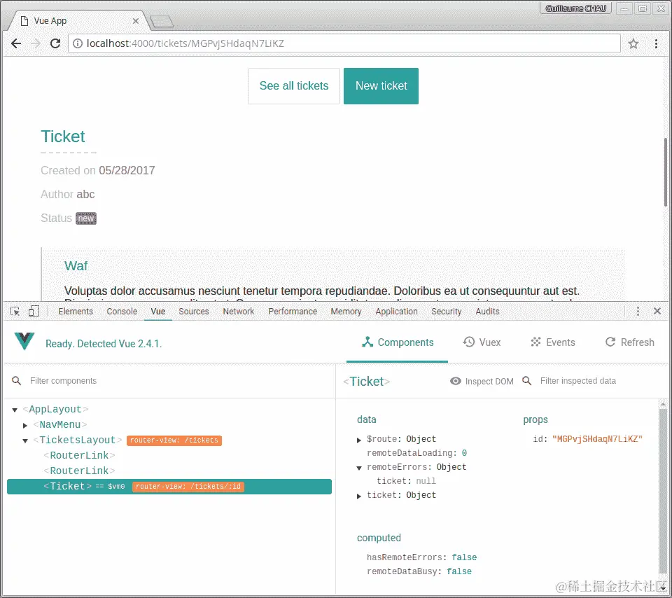 现在,id参数作为 prop 传递给组件,当在列表中点击票时,您应该看到票的详细信息页面: