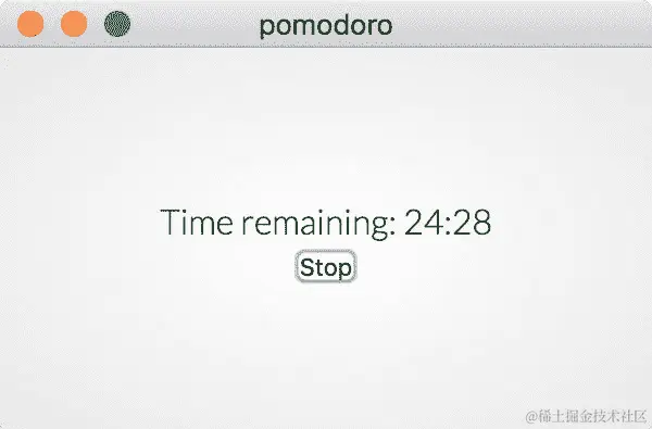 在这个示例中,我们将构建一个小而完整的应用程序——一个番茄钟应用程序。番茄钟是一个大约 25 个时间单位的间隔,在这个间隔中,您应该专注于工作。它被称为这个名字,因为通常使用一个番茄形状的厨房计时器来测量时间。这个应用程序将跟踪时间,这样您就不必购买一个昂贵的厨房计时器了。