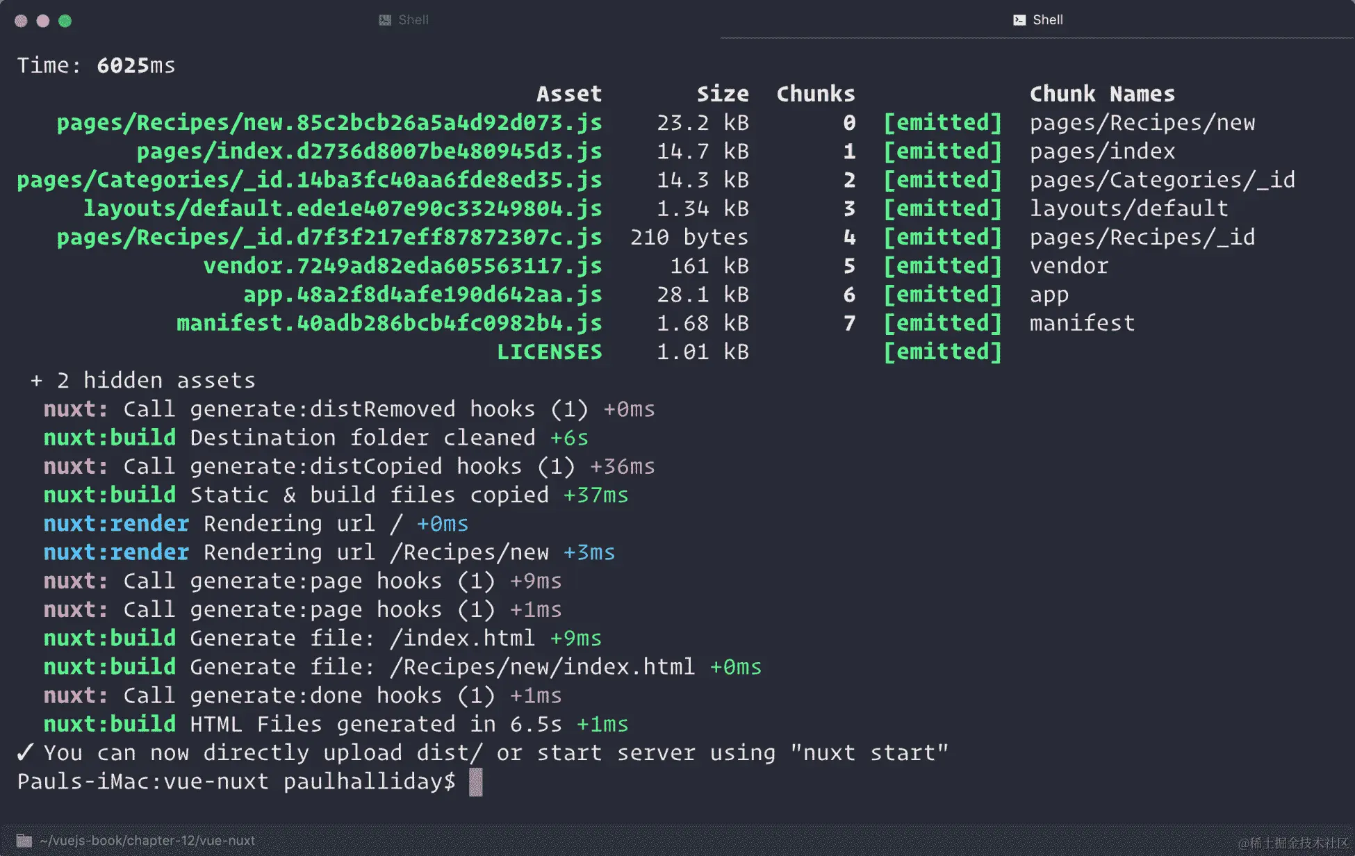 这将构建一个静态站点,然后可以部署到诸如 Firebase 之类的静态托管提供商。终端应该如下所示: