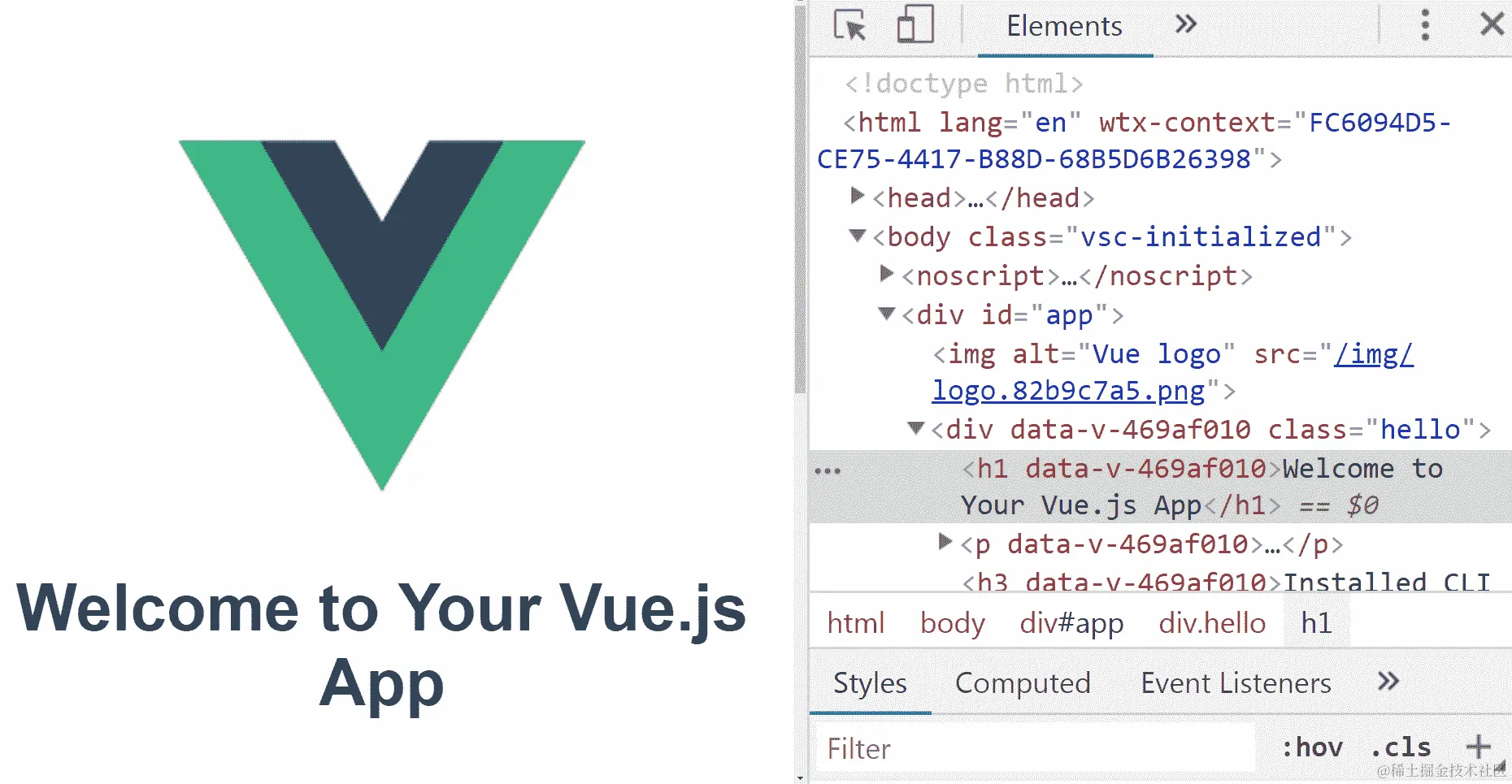 如果你查看在localhost:8080上提供的项目,你会看到它按预期工作,如果你从开发工具中打开main.js,你也会看到转译后的语法。