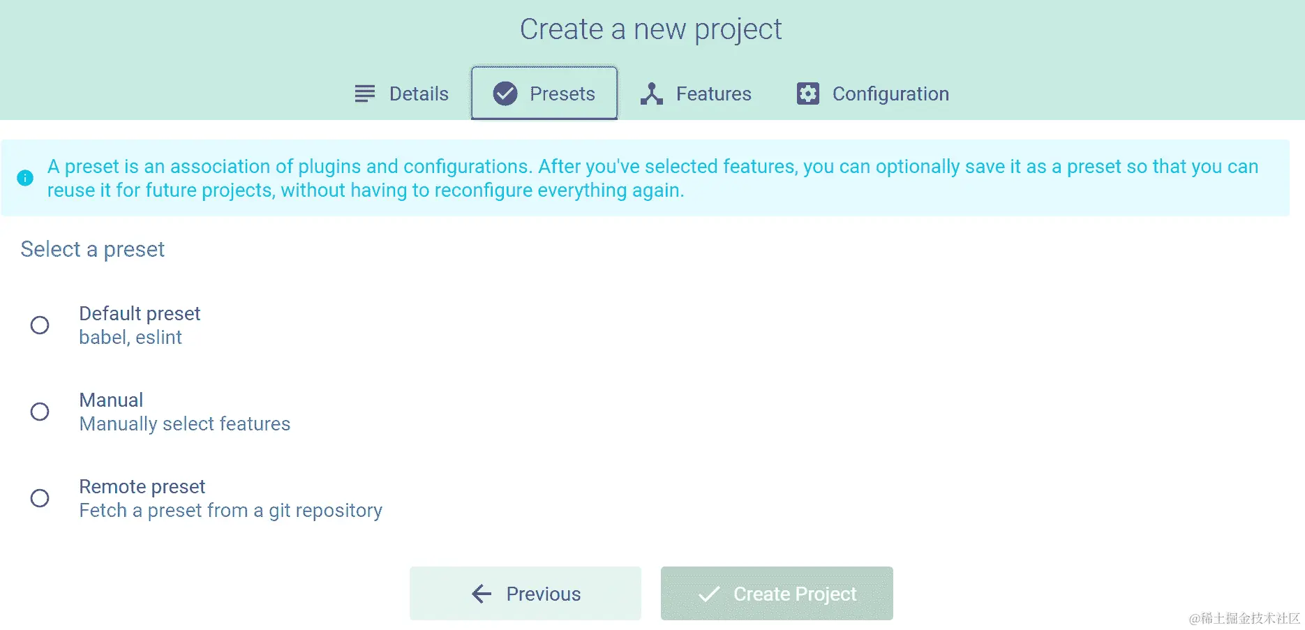 在我们开始构建应用程序之前,我们需要提醒自己在使用vue create时有一些选项,因此让我们运行这个:
