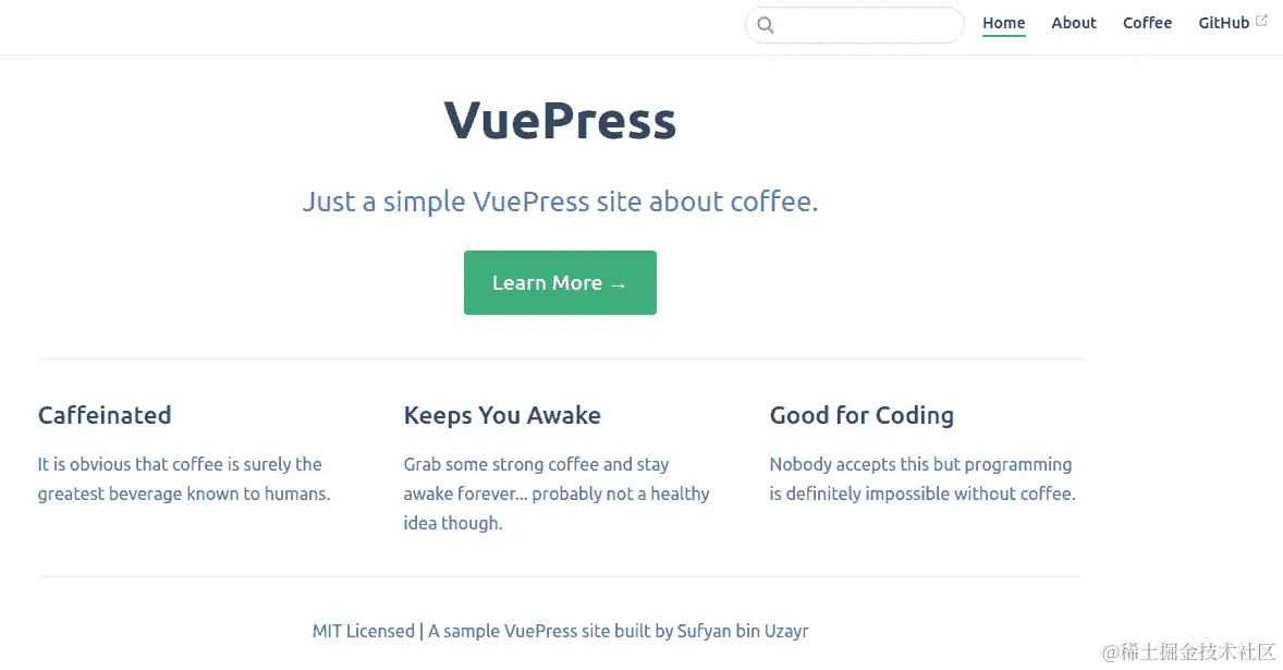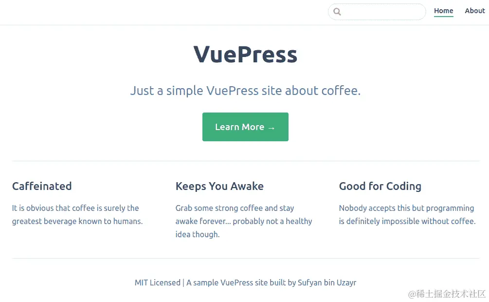 但 VuePress 不仅仅是静态站点生成!您可以自定义其外观,调整默认的最小主题,并利用 Vue.js 专业知识来扩展站点的功能。考虑到 Vue.js 的受欢迎程度在稳步上升,VuePress 已经站在了一个巨人的肩膀上,并且有很大的增长潜力!