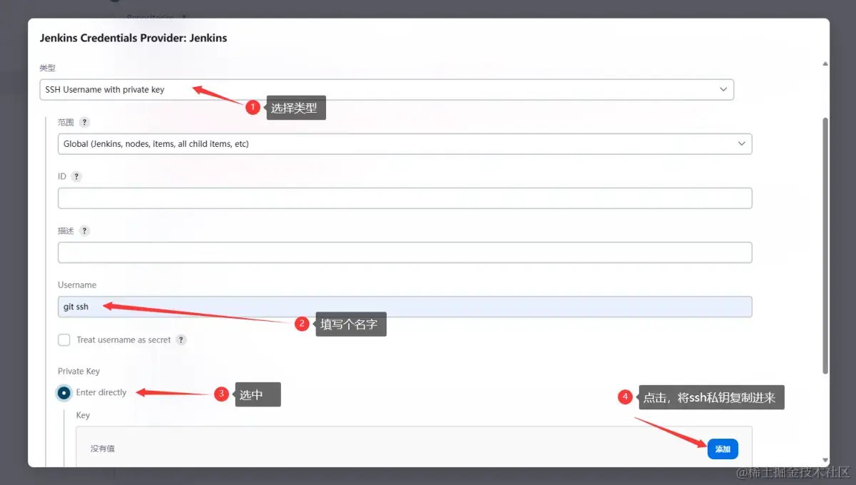 凭据添加完成后,Credentials选中刚刚添加的凭据,没有红色报错说明我们配置正确。