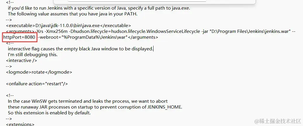 打开jenkins.xml,找到httpPort=8080进行修改,重启服务。